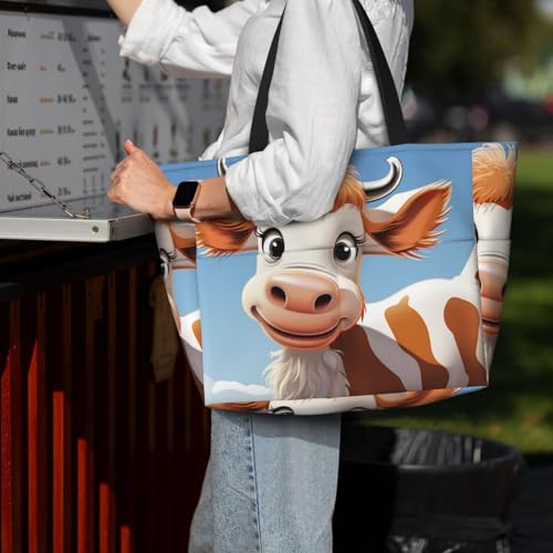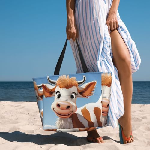 HOT ! Beach Bags For Women Large Waterproof Sandproof Beach Tote Bag Lightweight Zipper Carry On Bag Cartoon Cute Cow Pool Bag For Gym Travel Vocation