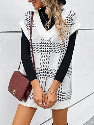 HOT ! GORGLITTER Women's V Neck Sleeveless Oversized Sweater Vest Tops Trendy Plaid Argyle Fall Cozy Cable Knit Long Sweater
