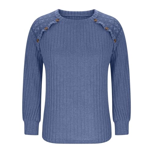 More information about Ribbed Tops for Women Fashion Lace Hollow Out Long Sleeve Sweater Fall Knitted Solid Color Casual Crewneck Tunic 2025