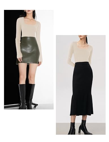 v28 Women Square Neck Knit Elasticity Stretchable Long Sleeve Slim Sweater Tops 5