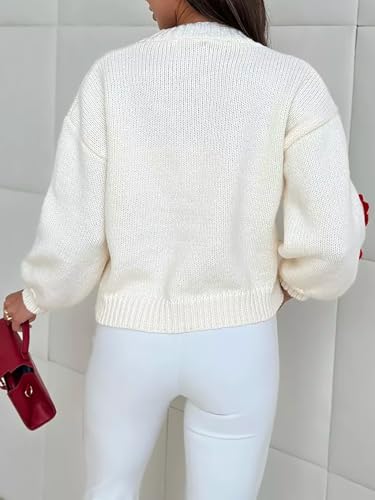 BAIMORE Women's Cute 3D Floral Crochet V Neck Button Down Long Sleeve Chunky Crop Sweater Cardigan 3