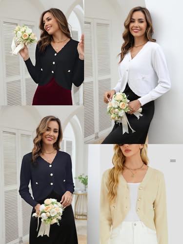 Womens Long Sleeve Shrug Button Down and Faux Pockets Cropped Bolero Cardigans Tops 1
