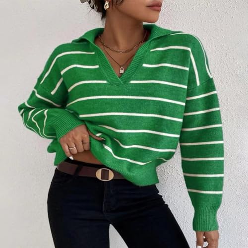 Heevina Sweaters for Women Striped Lapel V Neck Long Sleeve Knit Knitted Sweater Jumpers Trendy Pullover Winter Fall 2