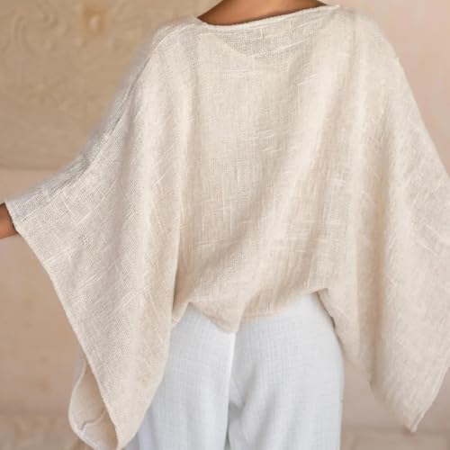 Women's Linen Cardigan Summer Lightweight Poncho Shrug Open Front Cover Ups Poncho Loose Shrug Sweaters 5