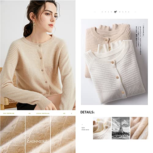 HOT ! Women's Round Neck Cashmere Knitted Sweater Cardigan, 100% Pure Cashmere Sweater, Pre Fall Cropped Cashmere Jacket (Color : White, Size : Medium)
