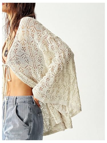 • Feature: Long sleeve, flared sleeve, hollow out, solid color, tie front, deep v neck, loose cardigan for women