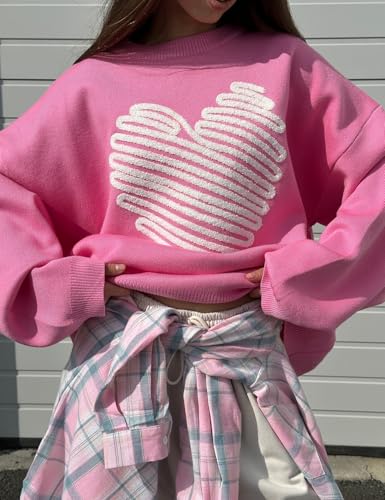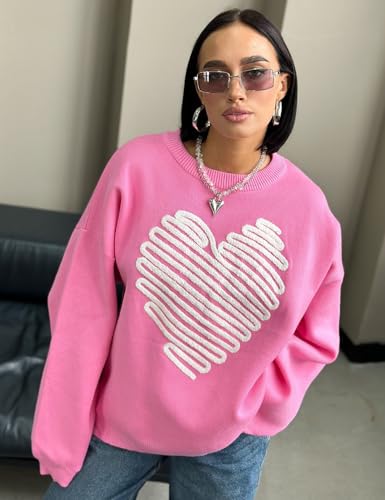 Arssm Women's Heart Pullover Sweaters Crew Neck Y2K Loose Fit Knit Cute Valentines Casual Sweater 7