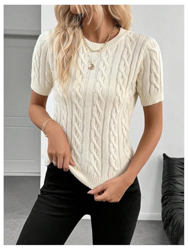 Women's Short Sleeve Cable Knit Sweater Crewneck Slim Fit Knit Pullover Tops Knitwear 4