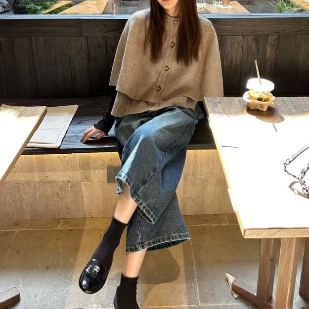 HOT ! Cape Coat for Women Button Up Cropped Cardigan Dressy Casual Workwear Knitted Sweater Old Money