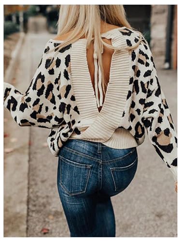 • Features: Cheetah print, round neck, tie back, cut out, backless sweater for women