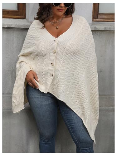 MakeMeChic Women's Plus Size Cable Knit Poncho Sweater Asymmetrical Neck Button Pullover Tops 1