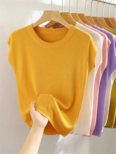 More information about Women's Casual Solid O-Neck Collar Knitted Pullover Short Sleeve Loose Straight Sweater