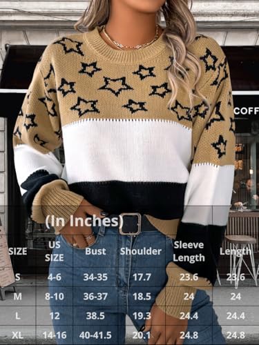 Star Sweater,Color Block Crew Neck Fall Sweaters for Women,Cute Long Sleeve Knit Tops 4