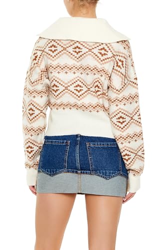 HOT ! Forever 21 Women's Geo Print Half-Zip Sweater