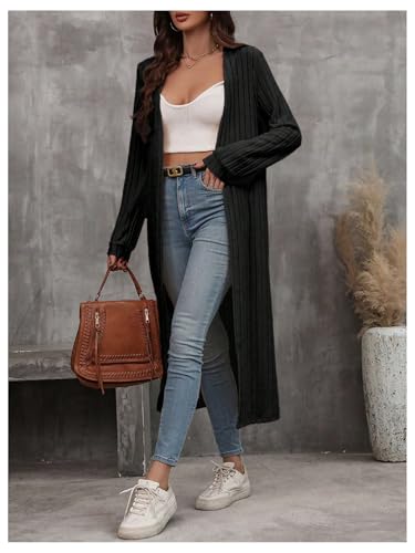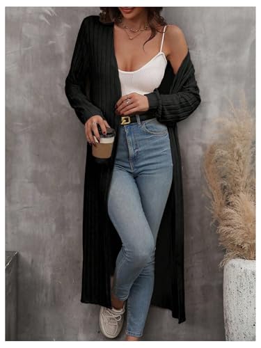 HOT ! MakeMeChic Women's Rib Knitted Long Cardigan Open Front Long Sleeve Knitted Outwear