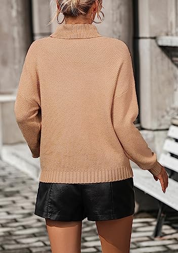 • Turtleneck and long sleeve. Ribbed knit neck, cuffs and hemline. Loose fit style. Solid colors: apricot, black, grey, khaki and turquoise blue.