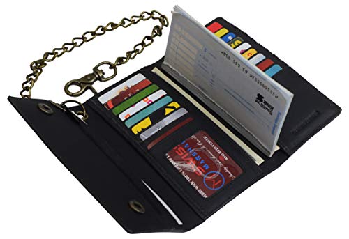 More information about RFID Blocking Mens Tri-fold Long Style Crazy Horse Leather Steel Chain Wallet(Black)