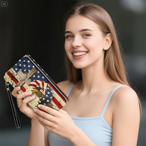 Mens Wallet, American Flag Eagle Wristlet Wallet For Men, Independence Day Card Holder Purse With Zipper, Birthday Christmas Graduation Independence Day Gifts For Men, Office Daily Purse 4
