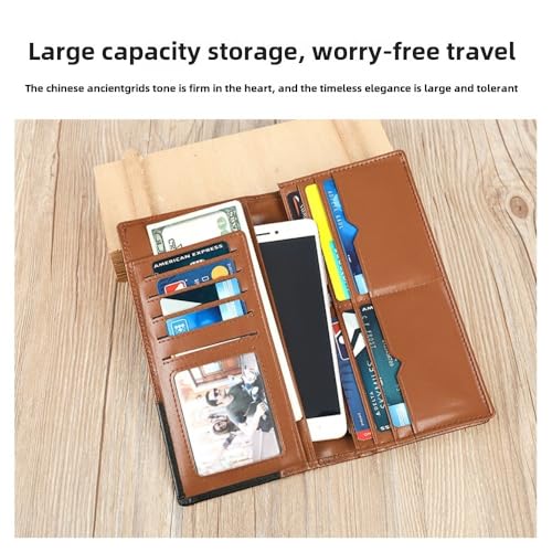 Genuine Leather Men's Long Handbag RFID Function Credit Card Holder Card Bag Leather Currency Multifunctional Wallet,Black 7