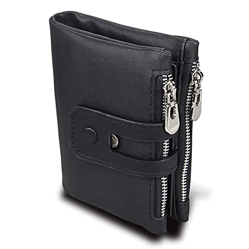More information about Genuine Leather Wallet for Men RFID Blocking Bifold with Coin Pocket Security Zipper Wallet (Black-01)