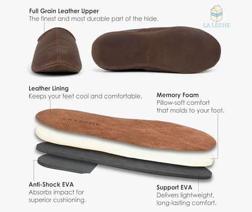 • MATERIAL TYPE: Full Grain Leather & Memory Foam - Experience the pinnacle of comfort and style with our premium slippers, exquisitely crafted from the finest Full Grain Leather. Designed with your comfort in mind, these slippers feature soft Memory Foam insoles that adapt to the unique contours of your feet, offering unparalleled cushioning and support with every step you take. These slippers are perfect for various home activities, from cooking in the kitchen to lounging in the living room.