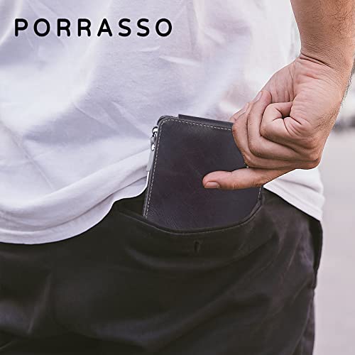PORRASSO Men Wallet Tri-fold Wallet Genuine Leather Card Holder with 11 Card Slots Coin Bag Coffee 6