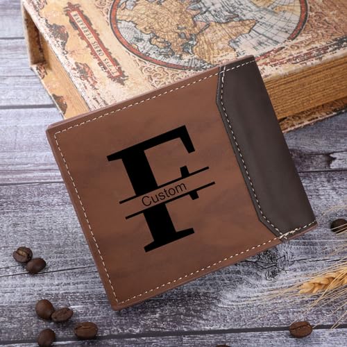 HOT ! MeMeDIY Personalized Leather Bifold Wallets for Men Custom Engraved Photo/Initial/Text Mens Wallets Customized Wallet Gifts for Men Boyfriend Son Dad Husband (B2-Initials & Inside Text, Light Brown)