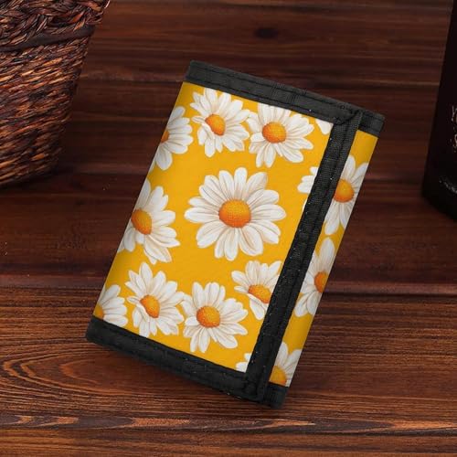 HOT ! Daisy White Orange Print Wallet for Men, 8 Credit Card Holder Slim Minimalist Front Pocket Small Mens Bifold Wallets