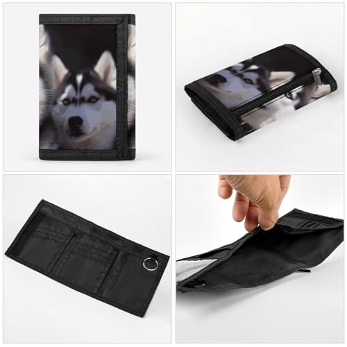 HOT ! Husky Dog Trifold Wallet for Men - Money Clip Slim Wallets with Multiple Card Slots Minimalist Small Front Pocket Wallet for Everyday Carry