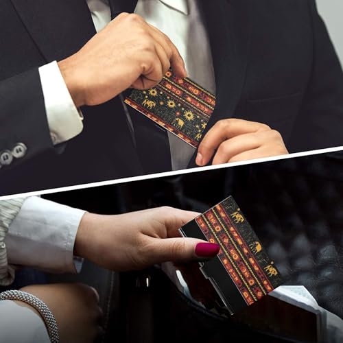 KLL Native American Buffalo Sun Pattern Red Black Yellow Ultra-Thin Business Card Holder case with Leather and Stainless Steel Card Organizer for Protects Your Cards tarjetero para Hombre 5