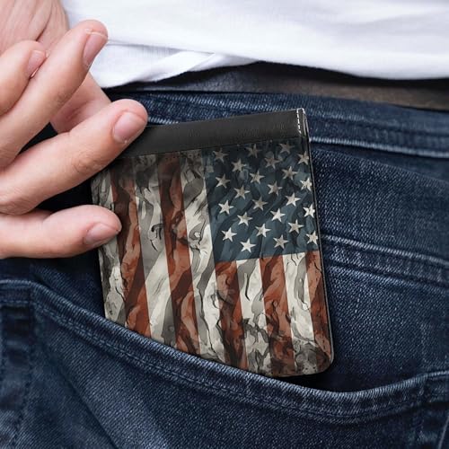 Men's Leather Wallet Bifold Wallet for Men American Camouflage Slim Wallet with Multiple Card Classic Passcase Mens Card Holder 4