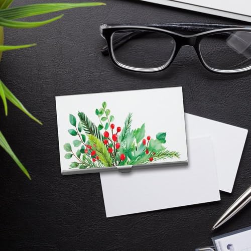 HOT ! Christmas Greenery with Red Berries Business Card Holder Pocket Slim Portable Metal Business Card Case