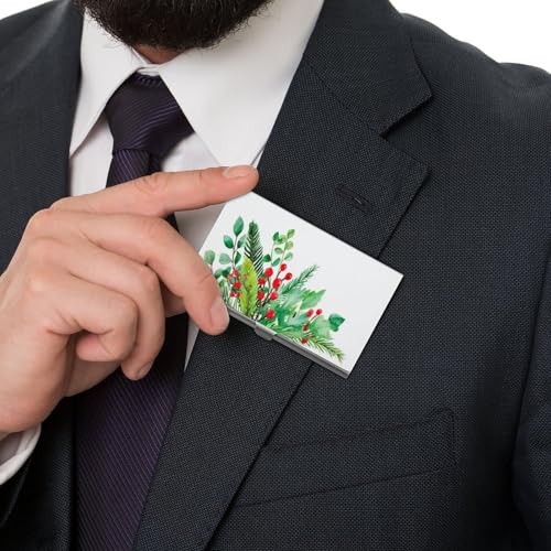 Christmas Greenery with Red Berries Business Card Holder Pocket Slim Portable Metal Business Card Case 7