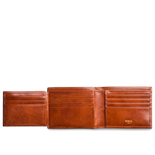 Bosca Men's Old Leather Bifold Wallet with ID Window and Card Slots - Italian Leather, Durable and Stylish - Amber Brown 7