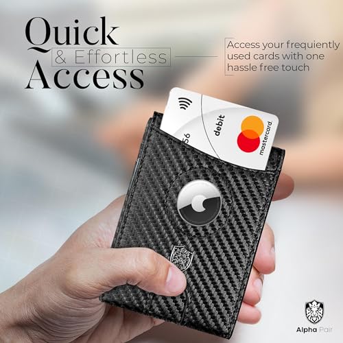 • Huge Capacity Modern Slim Wallet – Get rid of your bulky wallet and choose convenience and style with Alpha Pair. This air tag wallet is slim yet spacious to hold 10 credit cards, ID card, and bills with an integrated money clip. The U-designed notch lets you access frequently used cards with a single hassle-free touch.