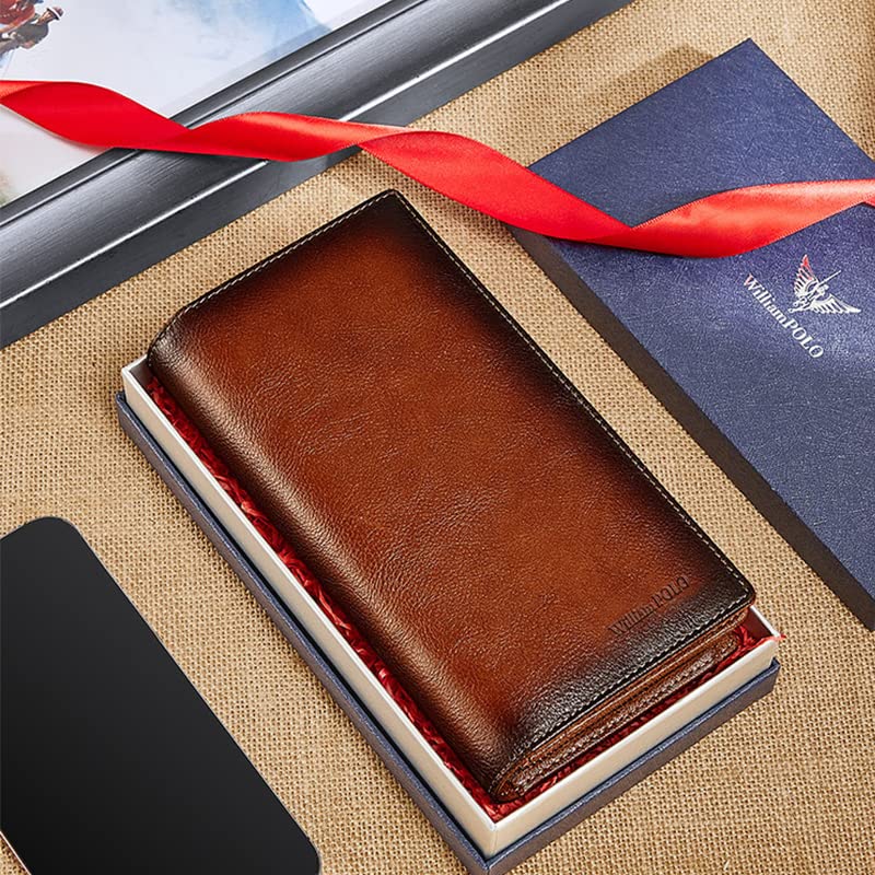HOT ! Men's Leather Wallet Long Wallet Vintage Leather Wallet Clutch Large Capacity Coin Purse Card Holder Luxury Wallet (yellowish brown)