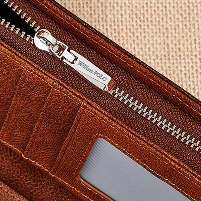 Men's Leather Wallet Long Wallet Vintage Leather Wallet Clutch Large Capacity Coin Purse Card Holder Luxury Wallet (yellowish brown) 6