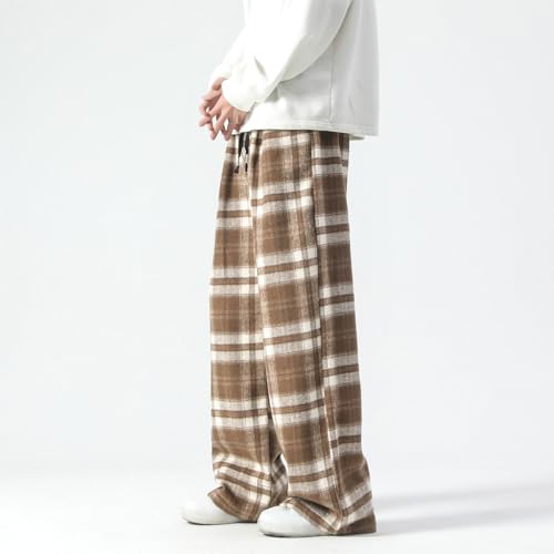 HOT ! GURUNVANI Mens Vintage Casual Pants Straight Plaid Trousers Drawstring Regular Fit