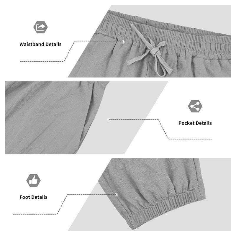 More information about Mens Linen Pants Lightweight Summer Casual Elastic Waist Drawstring Beach Straight Workout Pants