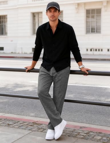 • 【DESIGN】 Men's casual pants featuresolid color, slightly stretchy, pleated design and loose fit style. Allow you maximum comfort and make you look great for your leisure time