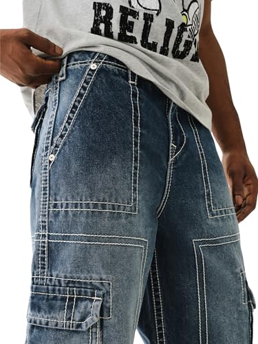 True Religion Men's Denim Big T Cargo Pants with Signature Stitching 6