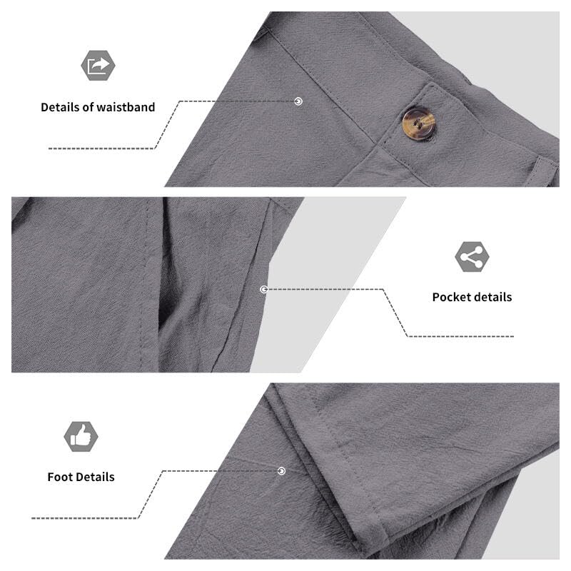 • Material: Crafted from high-quality linen fabric, the natural fibers offer exceptional breathability and skin-friendliness. This material effectively absorbs moisture and wicks away sweat, ensuring you remain cool and comfortable throughout the day—making it an ideal choice for summer wear, free from any sense of stuffiness. mens linen pants, lightweight, breathable, straight leg, loose fit, trousers for men, white linen pants