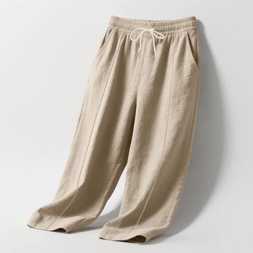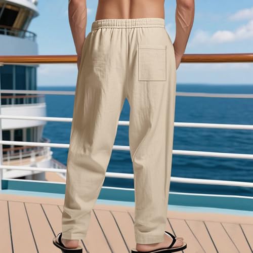 Men Cotton Linen Pants Drawstring Elastic Waist Pants Relaxed Fit Lightweight Yoga Beach Casual Trousers with Pockets 5