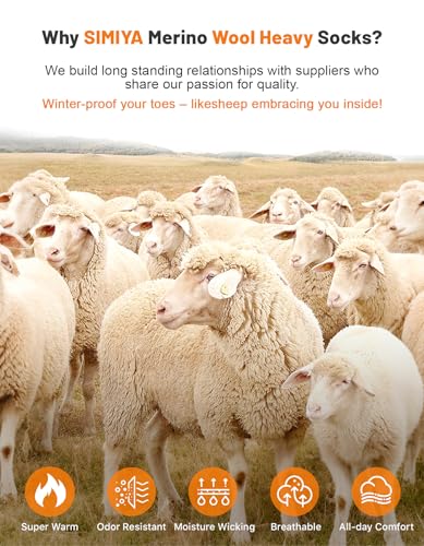 • Are They Comfortable? Anti-blister Marathon Comfort in every pairs. SIMIYA merino wool socks for men made with breathable, moisture-wicking merino wool that keeps feet dry, odor-free, and itch-free. Enjoy all-day comfort with natural temperature regulation, the thermal socks for men will keep your feet warm in winter and cool in summer. 5 Pairs warm socks for men are a perfect gift for him
