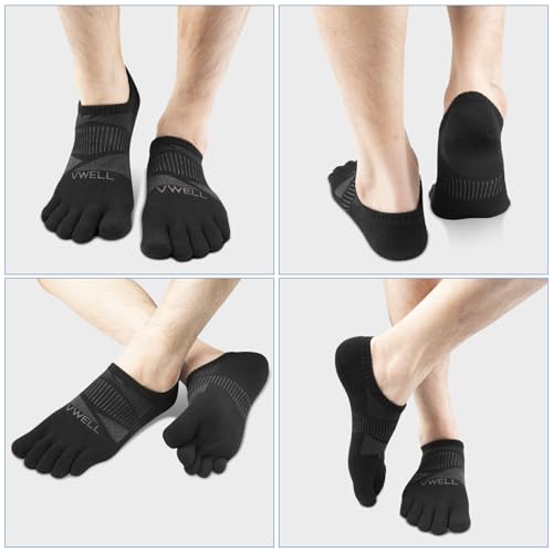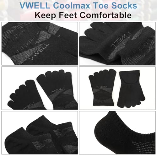 VWELL No Show Toe Socks for Men Women COOLMAX Five Finger Socks Athletic Running Ankle Low Cut 5 Toe Socks (3Pairs) 5