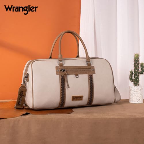 HOT ! Wrangler Travel Duffel Bag Large Weekender Bag for Women Designer Carry on Overnight Bag for Trips Leather Luggage Bag Gray WG185-5110LGY