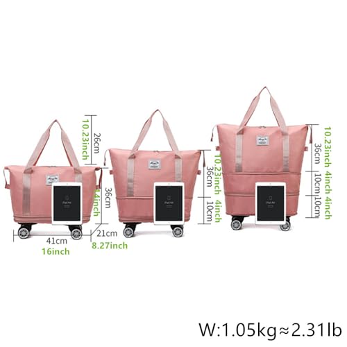 More information about Travel Tote Bag with Trolley Sleeve Expandable Extra Duffel Bag with Wheels Lightweight Traveling Foldable Suitcase