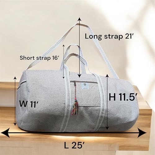 Style Savvy Hemp Gym bag/Travel Duffle Bag adjustable Shoulder Strap Gym, Swimming, Yoga, Sports, weekender bag 25x 11 x11.5Inches, 65 LitersHemp Gym Bag adjustable strap,pockets with zipper 7