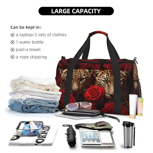 More information about Red Rose Leopard Lover Duffle Bag Foldable Travel Tote Bag Carry On Large Weekender Overnight Bags Waterproof Gym Bag For Women Men