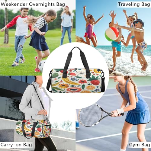 Fruits Oranges Papaya Travel Gym Bag Waterproof Sport Dance Bag for Women Men Portable Gymnastics Duffel Bags Canvas Tote Carry on Handbag for Workout Overnight Weekender 5